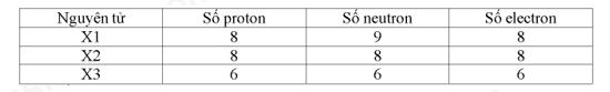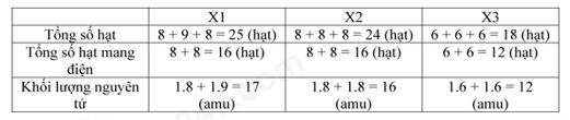 C. Khối lượng nguyên tử X1, X2, X3 theo đơn vị amu lần lượt là: 17, 16, 12.
