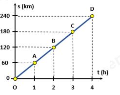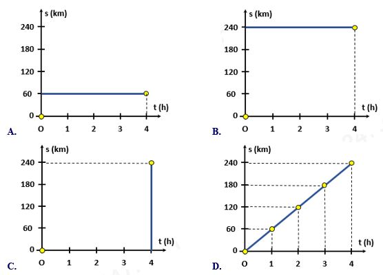 Câu 15: Bảng dưới đây mô tả chuyển động của một ô tô trong 4h. Hình vẽ nào sau đây biểu diễn đúng đồ thị quãng đường – thời gian của chuyển động trên?