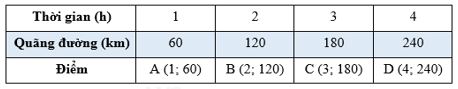 Xác định các điểm A, B, C, D trên đồ thị và nối các điểm lại ta được đồ thị quãng đường – thời gian: