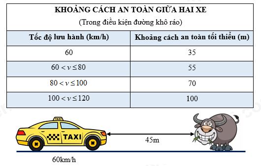 Câu 18: Cho quy định về khoảng cách an toàn theo Luật Giao thông đường bộ Việt Nam và hình vẽ dưới đây. Nhận xét đúng là: