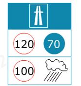 A. Trong điều kiện khô ráo, trên đường cao tốc tốc độ tối thiểu 70km/h, tối đa 120km/h.