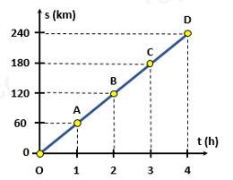 Điểm A trên đồ thị có \(s = 60km;t = 1h\)