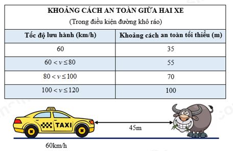 Câu 18: Cho quy định về khoảng cách an toàn theo Luật Giao thông đường bộ Việt Nam và hình vẽ dưới đây. Nhận xét đúng là: