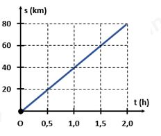 Câu 19: Hình bên biểu diễn đồ thị quãng đường – thời gian của một xe buýt xuất phát từ trạm A, chạy theo tuyến cố định đến trạm B, cách A 80km. Quãng đường đi được của xe buýt sau 1h kế từ lúc xuất phát là: