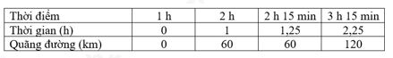 Ta có bảng sự phụ thuộc của quãng đường vào thời gian: