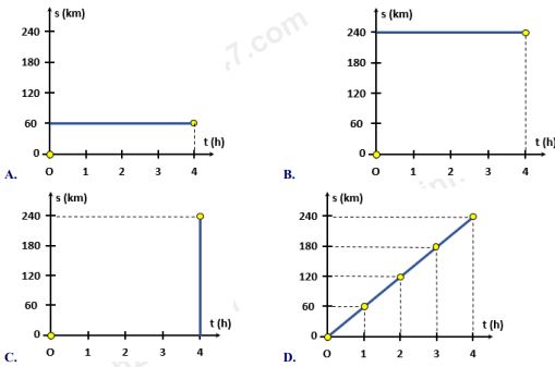 Câu 15: Bảng dưới đây mô tả chuyển động của một ô tô trong 4h. Hình vẽ nào sau đây biểu diễn đúng đồ thị quãng đường – thời gian của chuyển động trên?