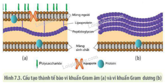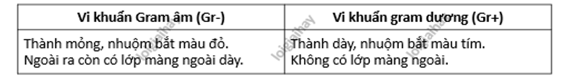 Dựa vào cấu tạo của thành tế bào của hai nhóm vi khuẩn Gram âm và Gram dương được thể hiện ở bài Tế bào nhân sơ để chỉ ra sự khác biệt về cấu trúc:
