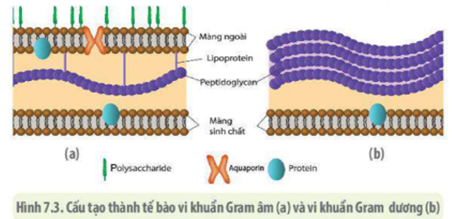 Dựa vào cấu tạo của thành tế bào của hai nhóm vi khuẩn Gram âm và Gram dương được thể hiện ở bài Tế bào nhân sơ để chỉ ra sự khác biệt về cấu trúc: