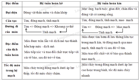 Phân biệt hệ tuần hoàn kín và hệ tuần hoàn hở: