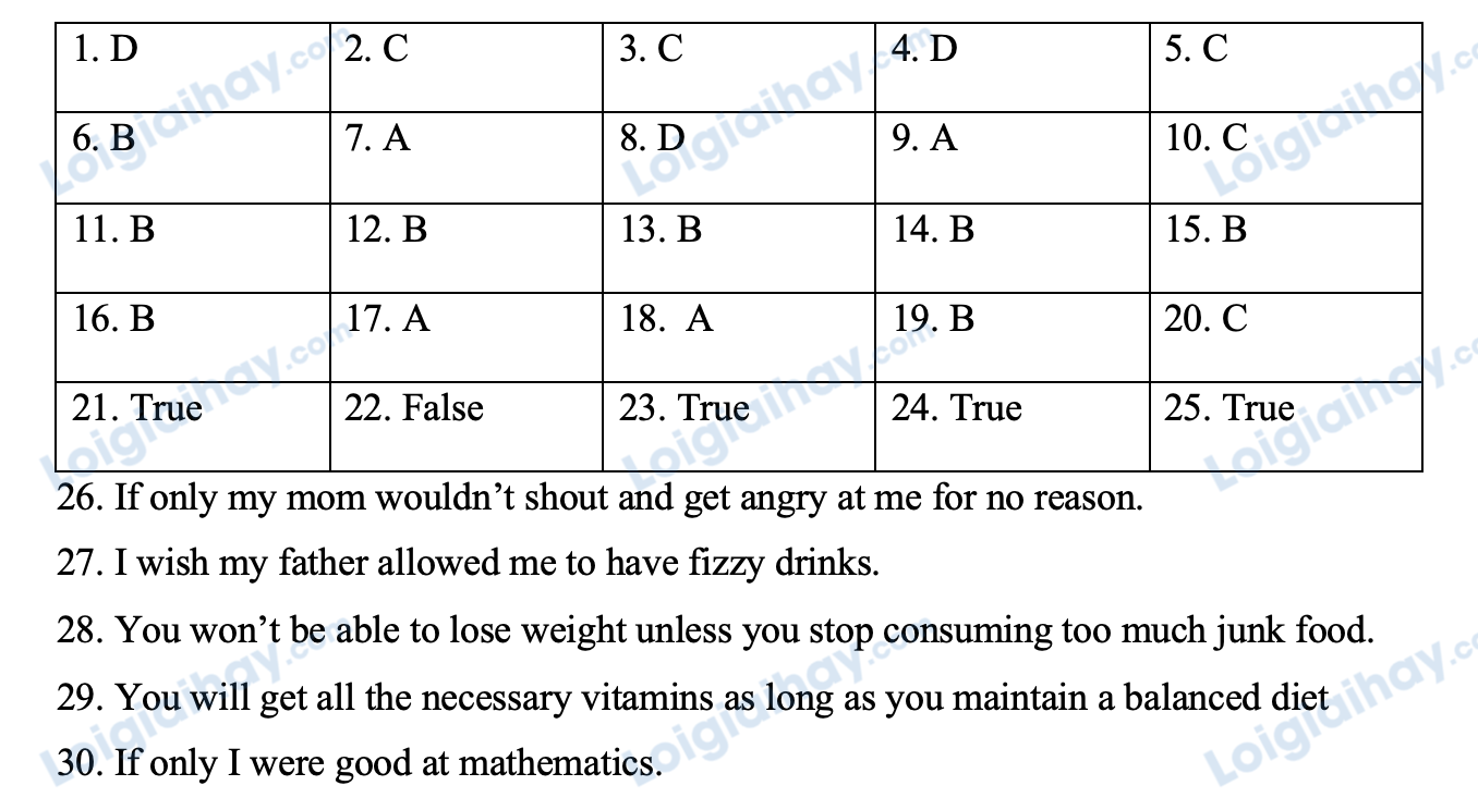 Find the word which has a different sound in the part underlined. Choose the correct answer. Choose the word or phrase among A, B, C or D that best fits the blank space in the following passage. Read the text and decide whether each statement is T (TRUE), F (FALSE). Rewrite the following sentences, using the given words in the brackets.
