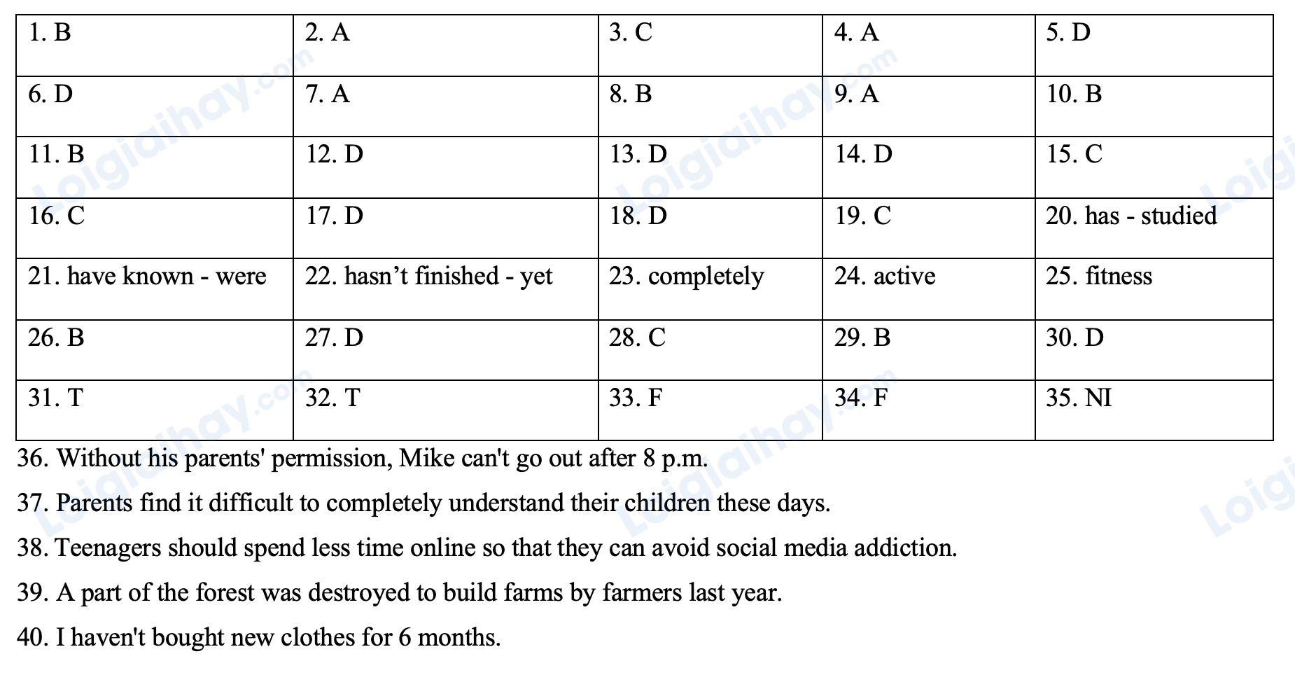 Đáp án: Without his parents' permission, Mike can't go out after 8 p.m.