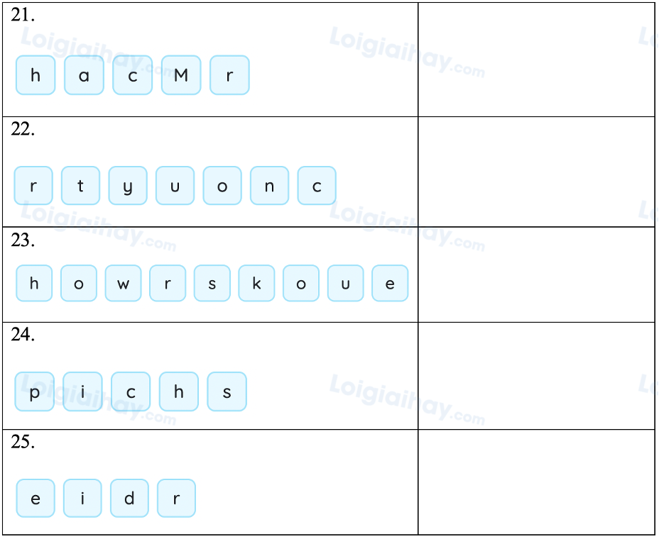 (Sắp xếp các chữ cái để tạo thành những từ đúng.)