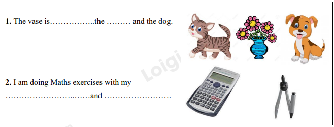 Đáp án: The vase is between the cat and the dog.