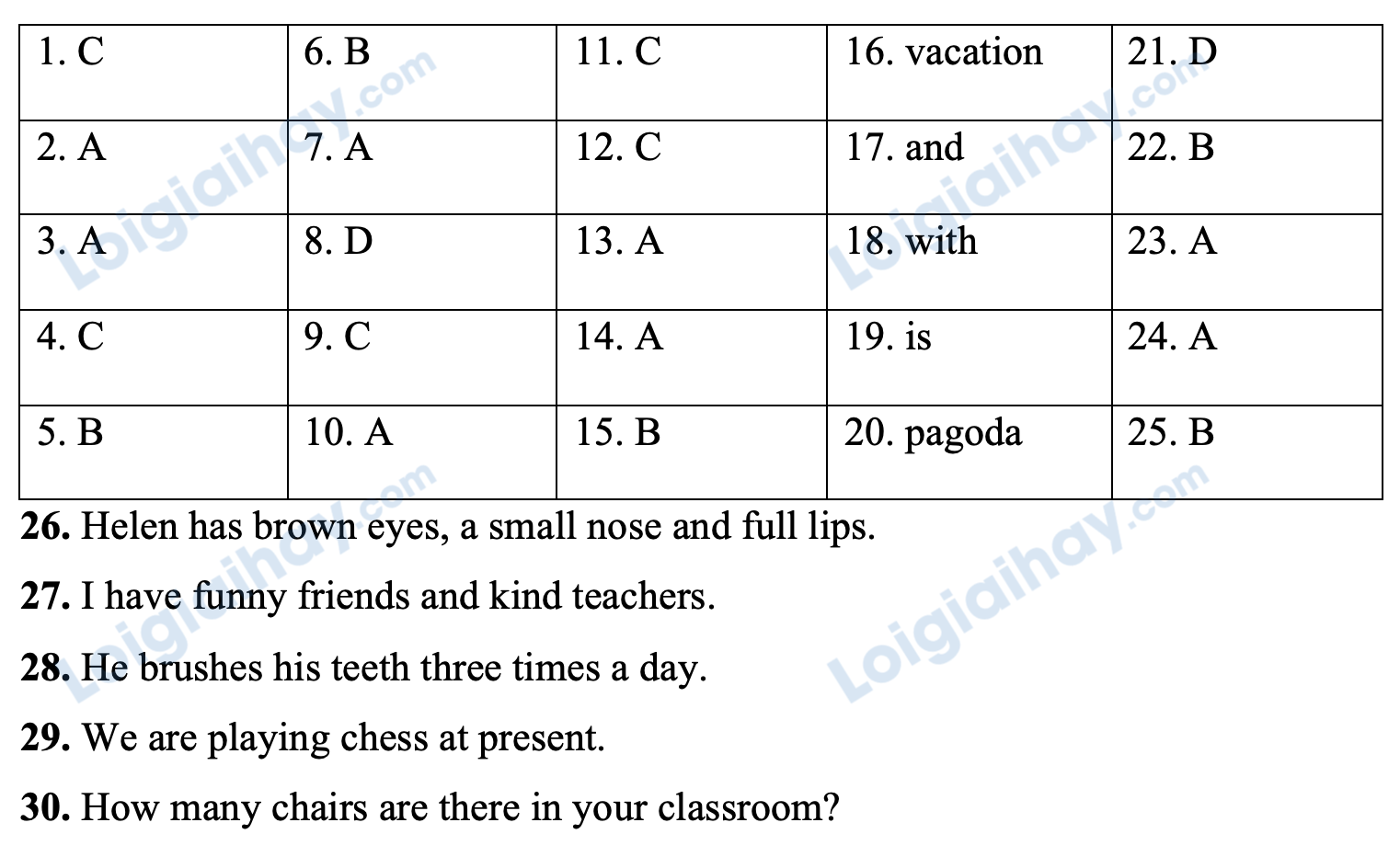 Hi. My name’s Lan. I have lots of friends in my new school and they are all nice. We study many subjects: Maths, Science, Literature, Physics, History and English. I have a new uniform. It looks nice. I wear it on Mondays only. I have lessons in the morning from 8 to 11.45. At break time, I often play badminton with my friends or chat. In the afternoon, I read books in the library or do the exercises at home. After dinner in the evening, I often watch TV or listen to music. I usually go to bed at 10. I always get up early in the morning so I never go to school late.