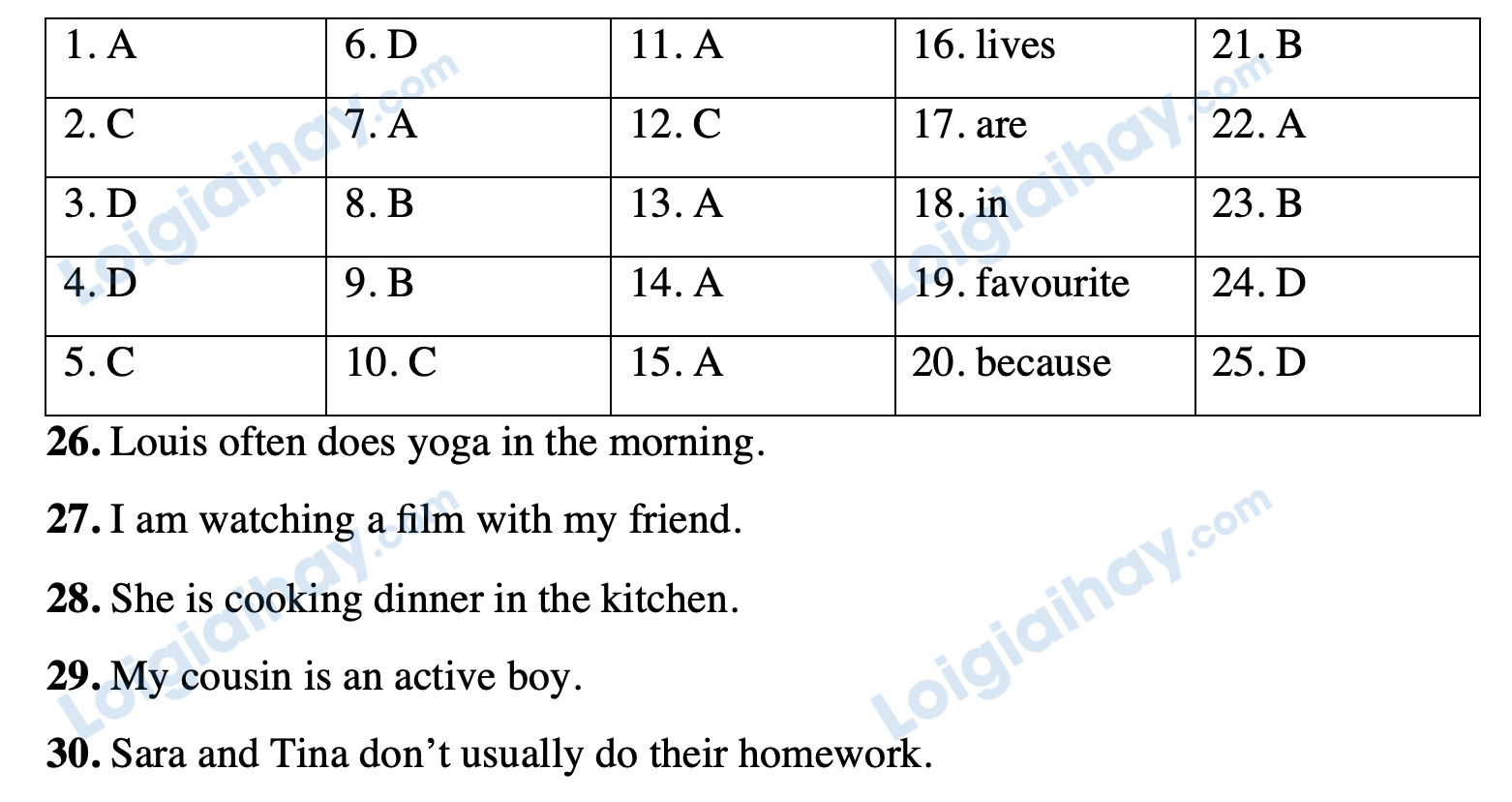 30. their homework/ don’t/ Sara and Tina/ usually/ do