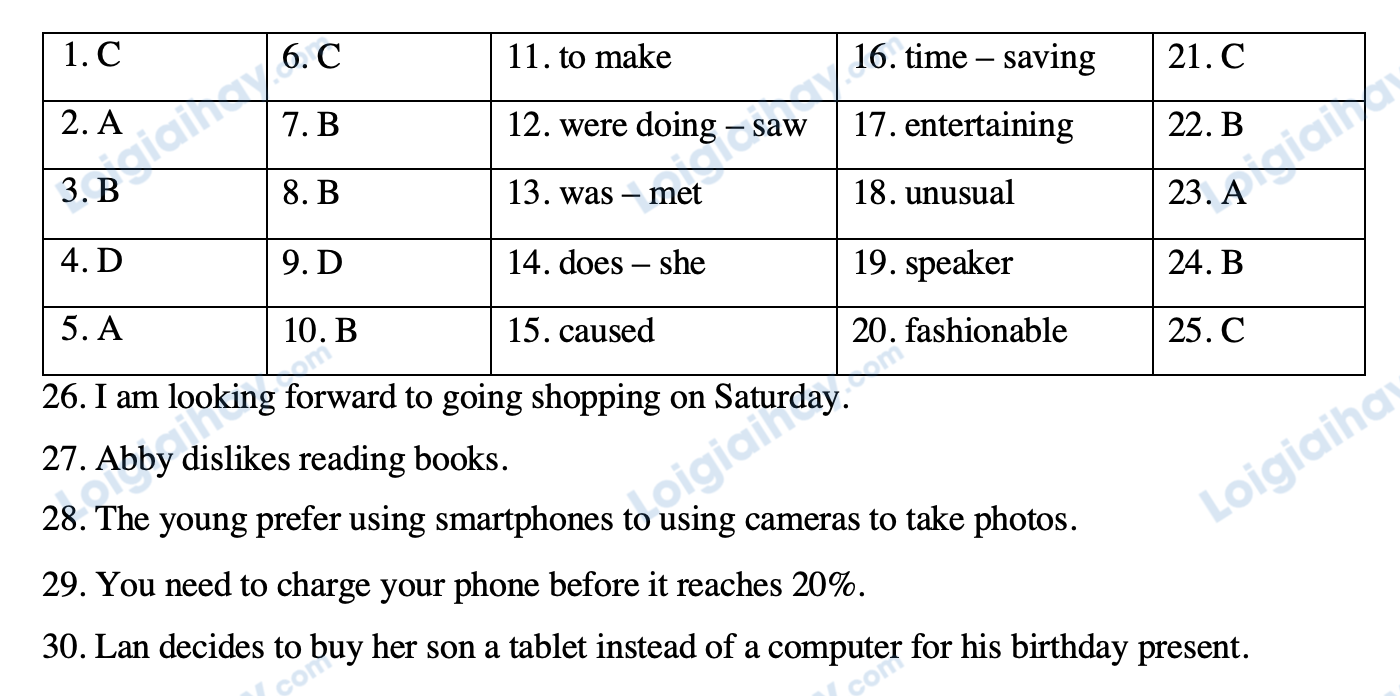 Choose the word choose the word whose underlined part is pronounced differently from the others. Choose the word which has a different stress pattern from the others. Choose the correct answers. Give the correct forms of the verbs in brackets. Give the correct forms of the words in brackets. Read the text then write A (Smart fork), B (Smart toothbrush) or C (Selfie toaster) next to each statement. Rewrite sentences keeping the same meaning. Use the given words in the brackets.