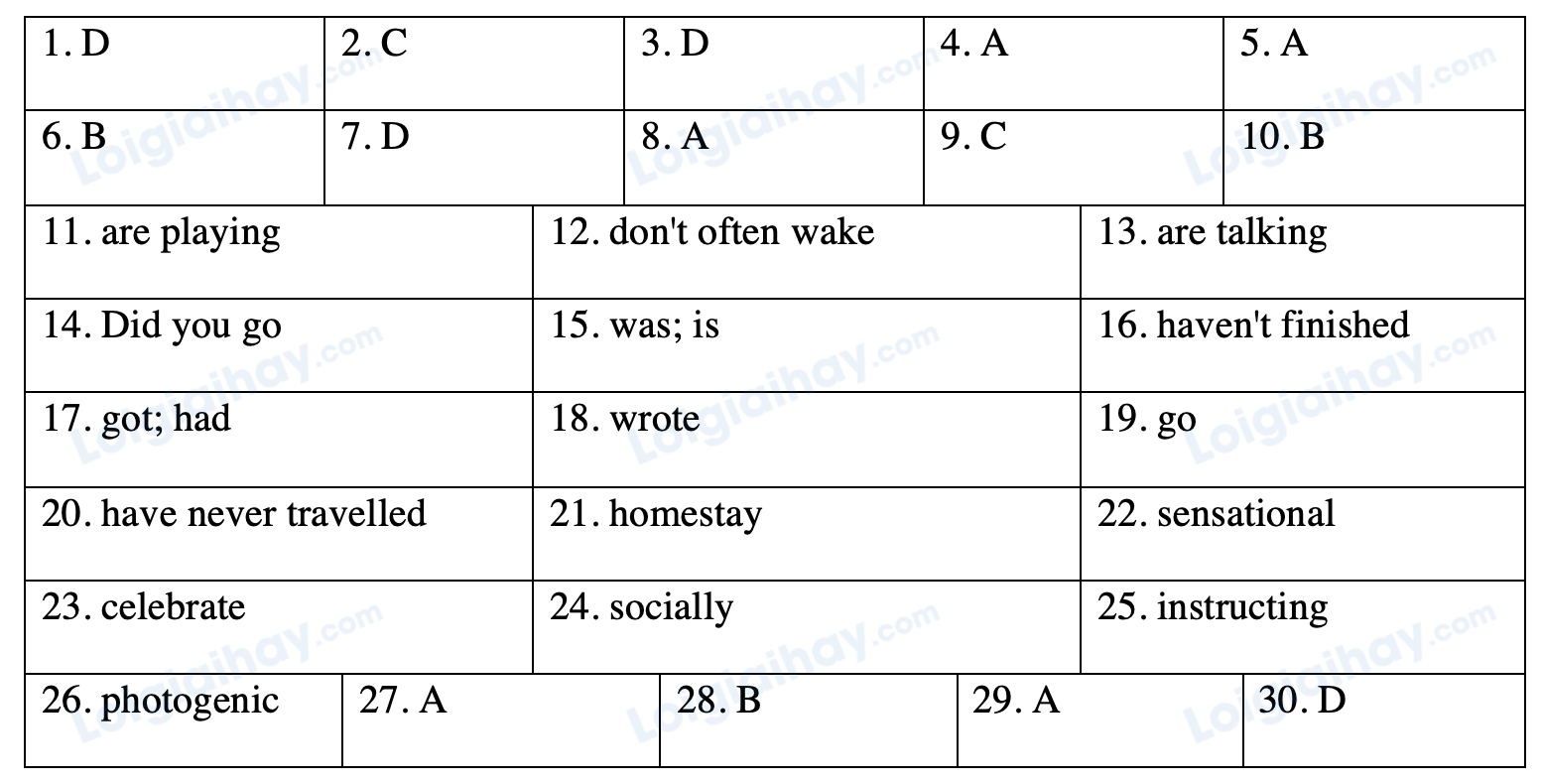 Giải thích: Câu diễn tả hành động diễn ra ngay tại thời điểm nói; dấu hiệu: “Look!”: Nhìn kìa!. Chủ ngữ “the boys” là danh từ đếm được số nhiều => động từ tobe chia “are”.
