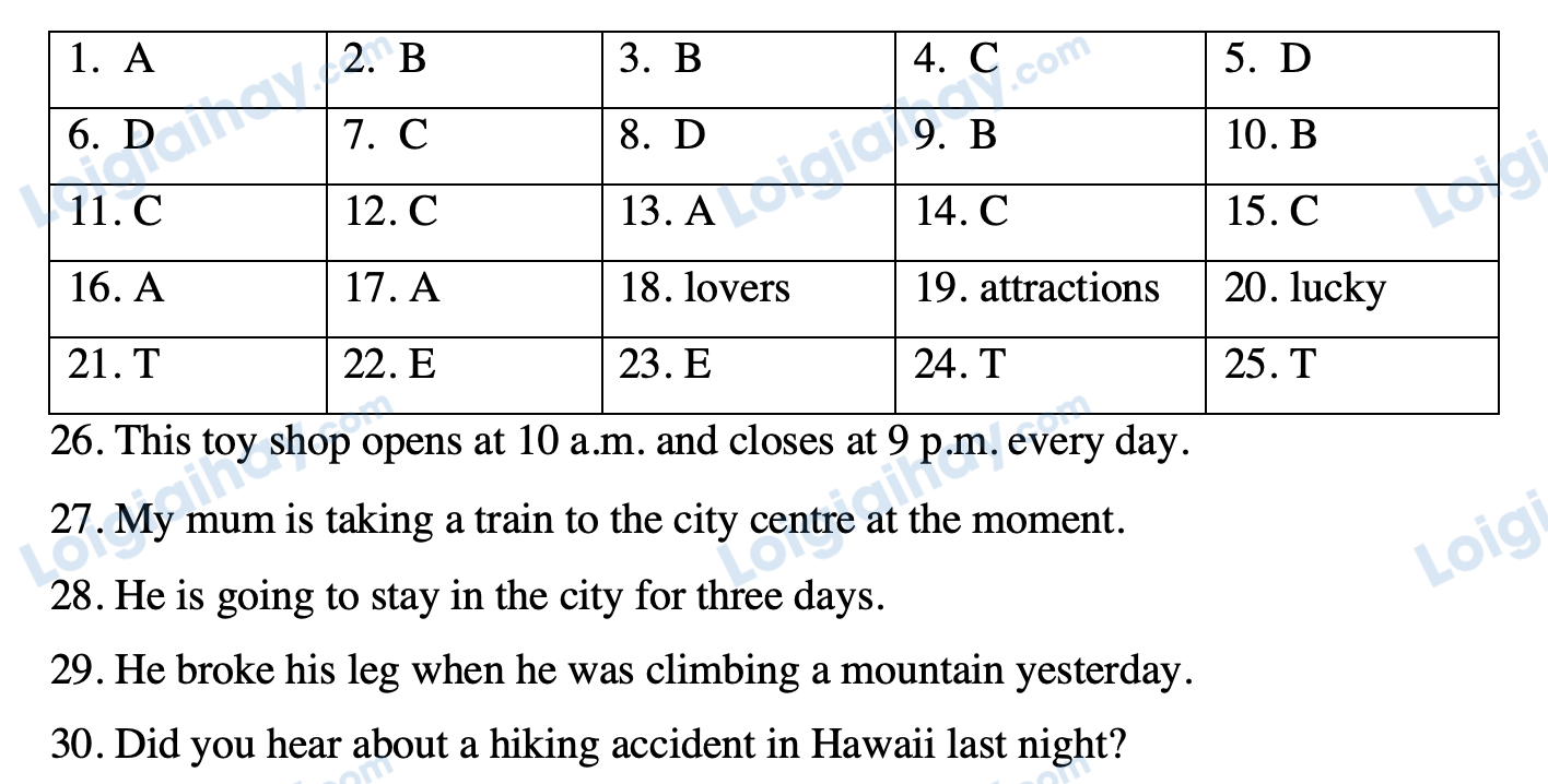 Đáp án lovers.