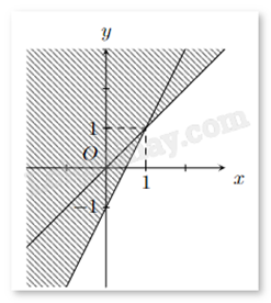 \(\left\{ {\begin{array}{*{20}{c}}{x - y \ge 0}\\{2x - y \ge 1}\end{array}} \right.\)
