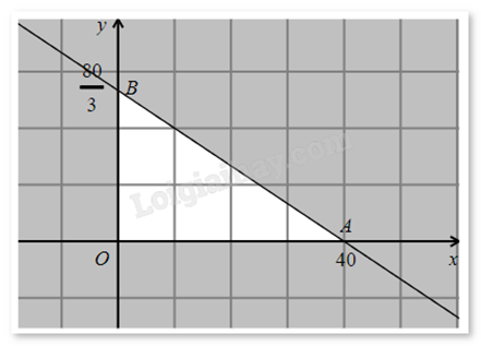 c) Cặp (x; y) thỏa mãn bài toán thuộc miền nghiệm của hệ \(\left\{ {\begin{array}{*{20}{c}}{2x + 3y \le 80}\\{x,y \ge 0}\end{array}} \right.\).