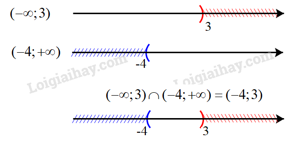Giao của hai tập hợp: \(( - \infty ;3) \cap ( - 4; + \infty ) = ( - 4;3)\)