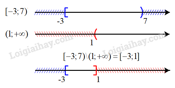 Hiệu của hai tập hợp: \([ - 3;7){\rm{\backslash }}(1; + \infty ) = [ - 3;1]\)