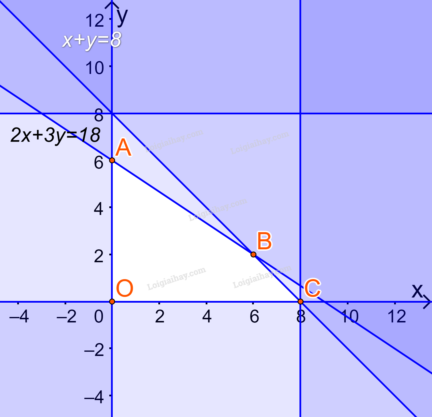 Biểu diễn miền nghiệm trên hệ trục Oxy, ta được: