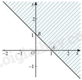 Ta thấy điểm O (0; 0) không thuộc đường thẳng \(d: - x + y = 1\) và \(0 + 0 < 1\) nên điểm O không thuộc miền nghiệm của bất phương trình \( - x + y > 1\) . Vậy miền nghiệm của bất phương trình \( - x + y > 1\) là mặt phẳng không kể bờ \(d: - x + y = 1\) không chứa điểm O (0; 0)