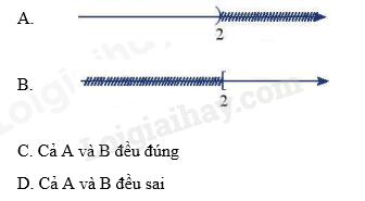 Tập hợp \(A = \left\{ {x \in \mathbb{R}|x < 2} \right\}\) được biểu diễn trên trục số là:
