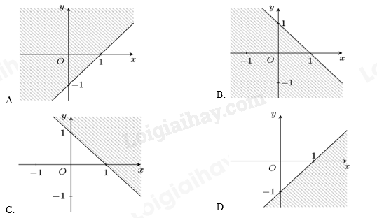 Trong các điểm ở trên, chỉ có điểm \(\left( {0; - 4} \right)\) thuộc miền bị gạch chéo. Do đó, điểm \(\left( {0; - 4} \right)\) không nằm trong miền nghiệm của bất phương trình.
