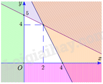 Trong các điểm ở trên, chỉ có điểm \(\left( {0; - 4} \right)\) thuộc miền bị gạch chéo. Do đó, điểm \(\left( {0; - 4} \right)\) không nằm trong miền nghiệm của bất phương trình.