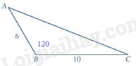Theo định lí cosin ta có: \(A{C^2} = A{B^2} + B{C^2} - 2.AB.BC.\cos B = {6^2} + {10^2} - 2.6.10\cos {120^0} = 196\)\( \Rightarrow AC = 14\)