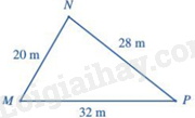 Diện tích tam giác MNP là: \({S_{MNP}} = \sqrt {40\left( {40 - 20} \right)\left( {40 - 28} \right)\left( {40 - 32} \right)} \approx 277,13\left( {{m^2}} \right)\)