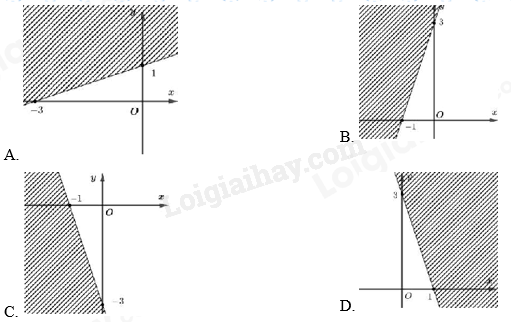 Câu 12: Cho bất phương trình có miền nghiệm là phần không bị gạch chéo (tính cả bờ) như hình dưới. Điểm nào sau đây không nằm trong miền nghiệm của bất phương trình trên?
