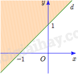 Ta thấy điểm O (0; 0) không thuộc đường thẳng d, \( - 0 + 0 - 1 \le 0\) và O thuộc miền nghiệm của bất phương trình nên bất phương trình cần tìm là \( - x + y \le 1\).