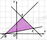 Miền nghiệm của hệ bất phương trình là miền tam giác ABC (kể cả các cạnh) với tọa độ các đỉnh \(A\left( {1;3} \right),B\left( { - 2;0} \right),C\left( {3;1} \right)\).