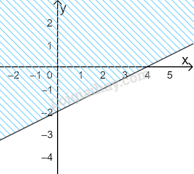 + Vì \(1 - 2.0 - 6 = - 5 < 0\) nên \(A(1;0)\) không thuộc miền nghiệm