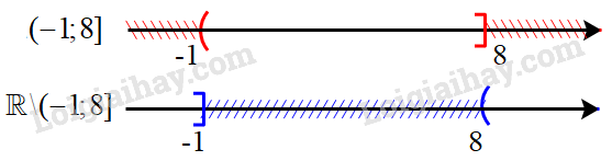 Hiệu của hai tập hợp: \(\mathbb{R}{\rm{\backslash }}( - 1;8] = ( - \infty ; - 1] \cup (8; + \infty )\)