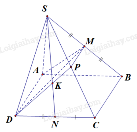 Xét trong (SCD), ta có SN cắt DP tại K’, do đó \(\left\{ \begin{array}{l}K' \in SN\\K' \in DP \subset (MAD)\end{array} \right.\)