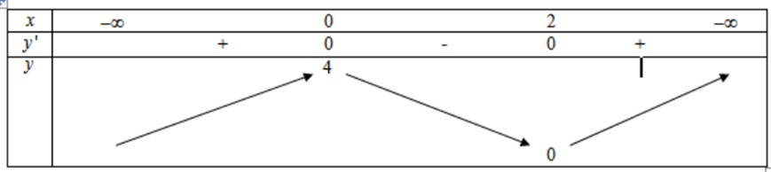 \(y' = 0\) suy ra x = 0 hoặc x = 2.