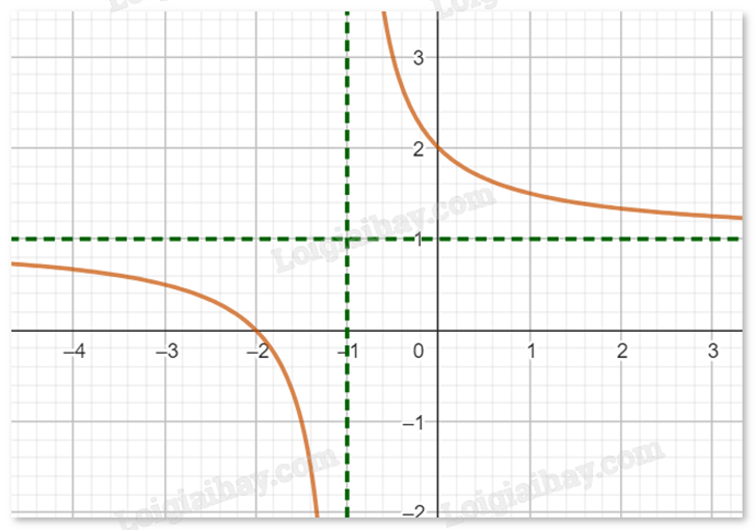 Đồ thị hàm số có tiệm cận đứng x = -1, tiệm cận ngang y = -1