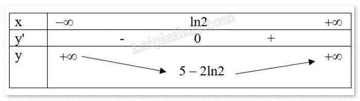 Ta có \(y' = 0 \Leftrightarrow {e^x} - 2 = 0 \Leftrightarrow x = \ln 2\).