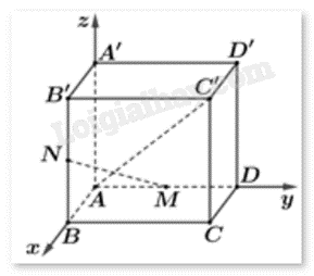 Do đó, \(\overrightarrow {MN} = \left( {x; - \frac{x}{2};\frac{x}{2}} \right)\) và \(\overrightarrow {AC'} = \left( {x;x;x} \right)\).
