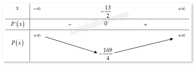 Ta có \(P'(x) = 2x + 13 = 0 \Leftrightarrow x = \frac{{ - 13}}{2}\).