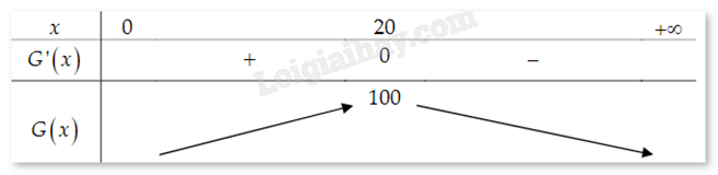 Ta có: \(G'(x) = 1,5x - 0,075{x^2} = 0 \Leftrightarrow \) x = 0 hoặc x = 20.