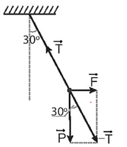 Ta có: \(\tan {30^o} = \frac{F}{P}\), suy ra \(F = P.\tan {30^o} = 0,1.\frac{1}{{\sqrt 3 }} \approx 0,06\) (N).