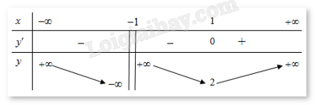 Câu 1. Cho hàm số y = f(x) xác định trên R{-1}, liên tục trên mỗi khoảng xác định và có bảng biến thiên như hình. Mệnh đề nào dưới đây đúng?