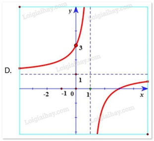 Hàm số \(y = \frac{{x - 2}}{{x - 1}}\) có đồ thị là hình vẽ nào sau đây? Hãy chọn câu trả lời đúng.