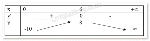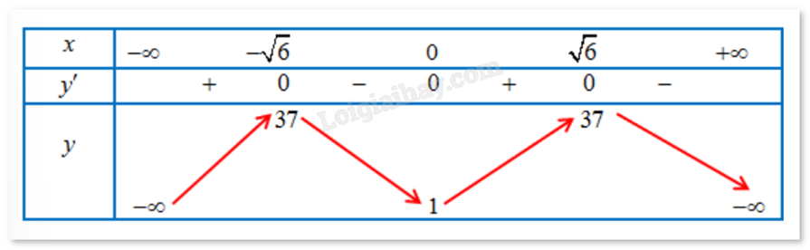 \(f'(x) = - 4{x^3} + 24{x^2} = 0\) khi \(x = \sqrt 6 \), \(x = - \sqrt 6 \) hoặc x = 0.