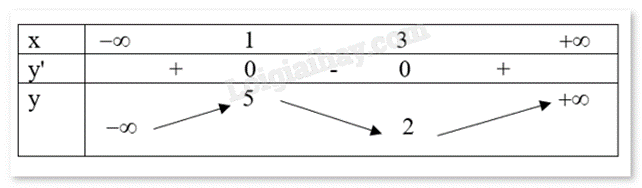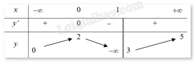 Cho hàm số \(y = a{x^3} + b{x^2} + cx + d\) có bảng biến thiên như hình vẽ sau: